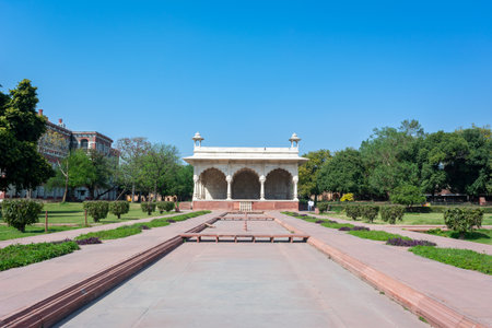 New Delhi, India, Mar 30 2019 - Tourists stroll around the Divan-i-Khas and Khas Mahal, Red Fort complex, Old Delhi, Delhi, India