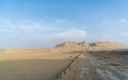 the formation of kaluts or sand stones or yardang in dasht e lut or sahara desert, iran. Nature and landscapes of desert. Middle East desert