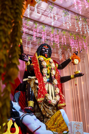 Idol of hindu goddess kali during navratri festival