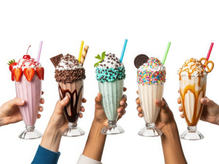 Enjoying delicious milkshakes with whipped cream and chocolate syrup in a cozy cafe