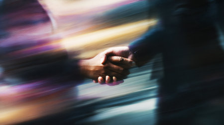 A captivating image of two hands shaking, captured in a motion blur effect, symbolizing partnership and collaboration in a professional context.
