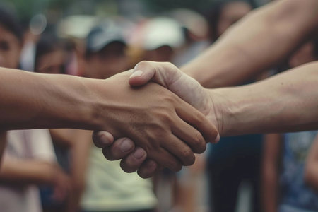 Close up of two hands shaking, symbolizing unity and agreement. image captures essence of collaboration and connection, highlighting importance of partnership and trust
