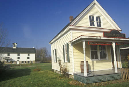 Stone general store and agricultural barn building in colonial village