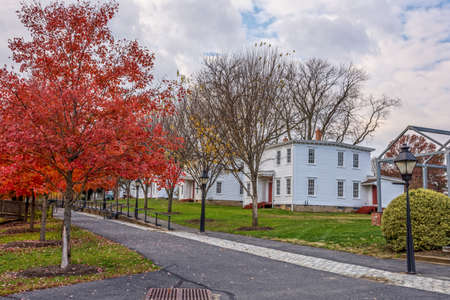 SMITHVILLE, NEW JERSEY - NOVEMBER 16 - A scenic Autumn view of historic homes along Park Avenue on November 16 2016 in historic Smithville NJ