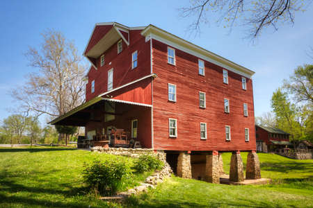 View of Adams Grist Mill in Indiana, United States. Built in 1845 and restored in 1940
