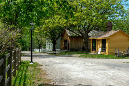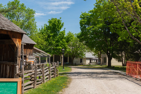 Toronto, ON, Canada – May 15, 2022: View the over forty 19th-century buildings in the open-air heritage museum Black Creek Pioneer Village in Toronto, Ontario, Canada. The village is a recreation of life in 19th-century Ontario and gives an idea of how