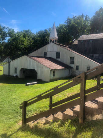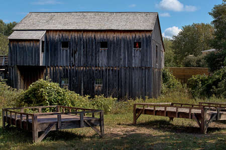 museum an open-air heritage in Toronto, Upper Canada Village, Old wooden buildings woollen factory, traditional historical lifestyle in Canada. Travel to Canada.