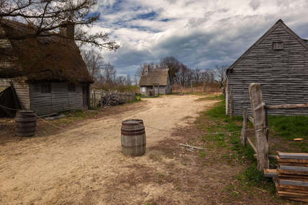 Old buildings in Plimoth plantation at Plymouth, MA. It was the first Pilgrims settelment in nord America.