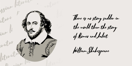 Vector portrait of the national poet of England. William Shakespeare is one of the best playwrights in the world. His phrase There is no story sadder in the world than the story of Romeo and Juliet