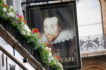 London, UK - June 13, 2012: English pub sign, Public house, known as pub, is focal point of community. Pub business, now about 53,500 pubs in UK, has been declining every year.