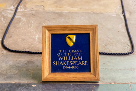 STRATFORD-UPON-AVON, UK - JUNE 11, 2022: The grave of the poet William Shakespeare in Holy Trinity Church in Stratford upon Avon, UK
