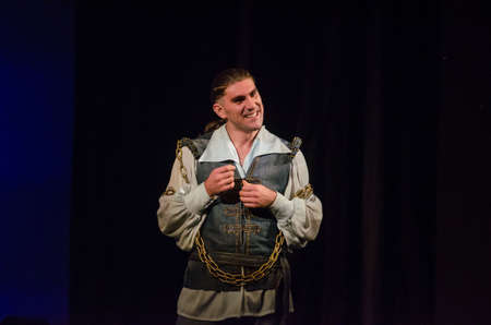 DNIPRO, UKRAINE - SEPTEMBER 30, 2017: The Comedy of Errors by William Shakespeare performed by members of the Chernihiv Regional Academic Music and Drama Theater named after TG Shevchenko.