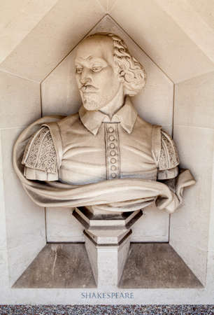 A sculpture of famous playwright William Shakespeare situated outside Guildhall Art Gallery in London.