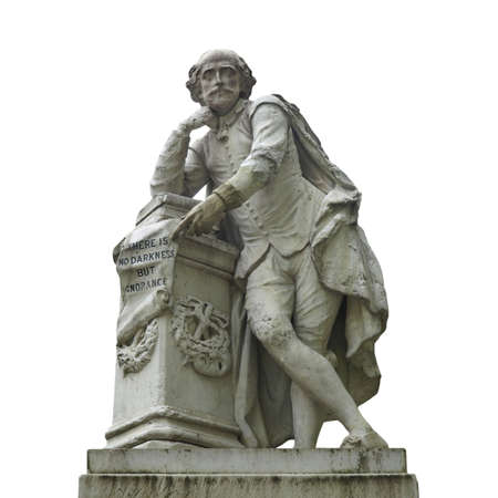 Statue of William Shakespeare (year 1874) in Leicester square, London, UK - isolated over white