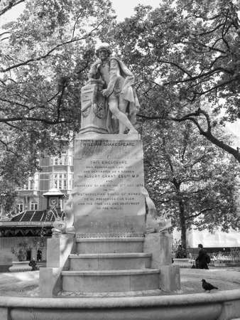 LONDON, UK - JUNE 10, 2015: Statue of William Shakespeare built in 1874 in Leicester Square in black and white