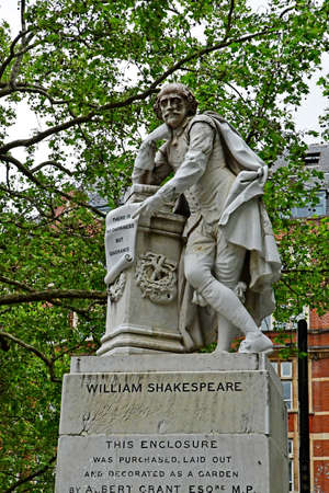 London, England - may 3 2019 : the William Shakespeare statue in the Leicester Square