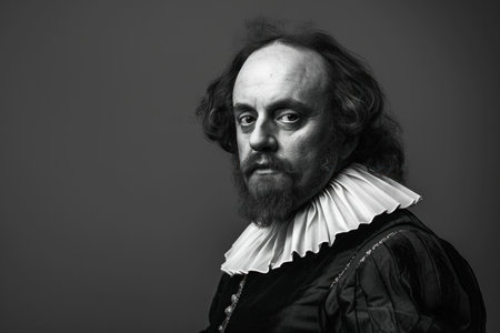 An AI generated illustration of William Shakespeare in a historically accurate costume