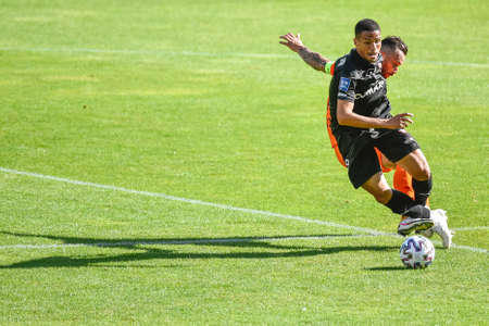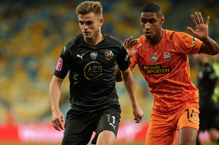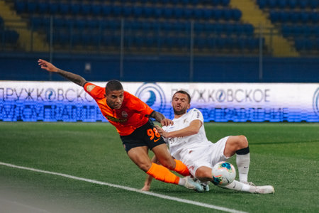 KYIV, UKRAINE - AUGUST 13, 2021: Tete vs Andriy Remenyuk. the football match Shakhtar Donetsk vs Metallist-1925 Kharkiv