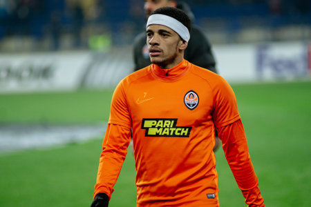 Kyiv, Ukraine - December 12, 2018: Junior Moraes, defender of Shakhtar during the UEFA Champions League match between Shakhtar Donetsk vs Olympique Lyon