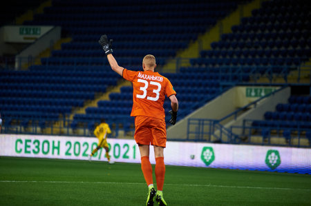 KHARKIV, UKRAINE - OCTOBER 5, 2020: Goalkeeper Mahankov. Football match of PFL Metallist-1925 - Polissya