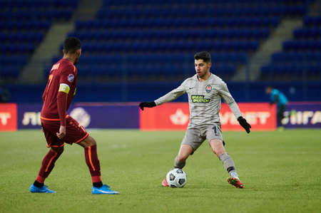 KHARKIV, UKRAINE - OCTOBER 23, 2018: Nikolay Matvienko during the match UEFA Champions League game against Shakhtar Donetsk at OSK Metalist stadium