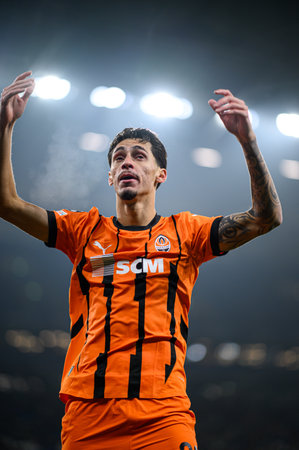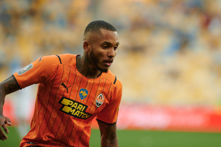 Kyiv, Ukraine - December 12, 2018: Taison, defender of Shakhtar during the UEFA Champions League match between Shakhtar Donetsk vs Olympique Lyon