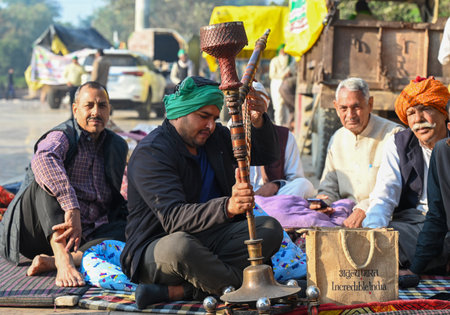 a group of nihang sikh,they are protesting against new faram laws in india.