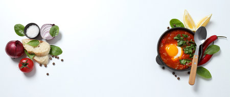 Shakshuka with fresh vegetables on a white background