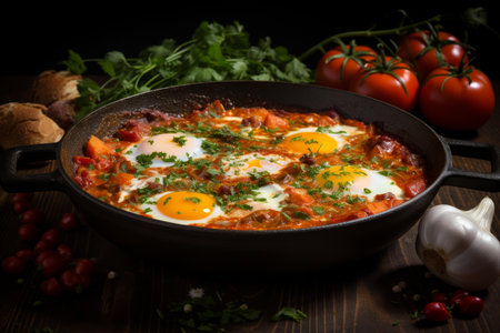 Shakshouka arabic. Egg tomato dinner. Generate Ai