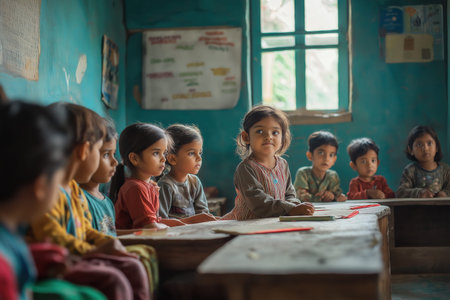 Asian children study together in class, emphasizing the right to education