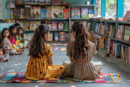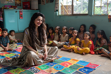 A warm classroom glows with the magic of storytime A dedicated teacher enthralls a group of attentive young students with a captivating tale Their eyes sparkle with wonder, their imaginations ignited by the power of words This heartwarming scene captures the essence of learning through shared stories, a cherished tradition that nurtures young minds AI Generative