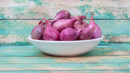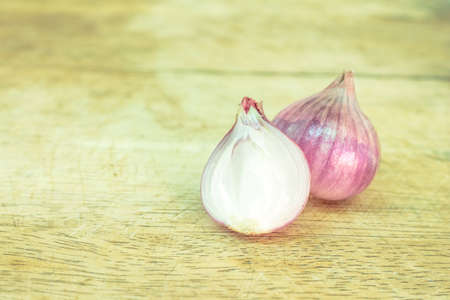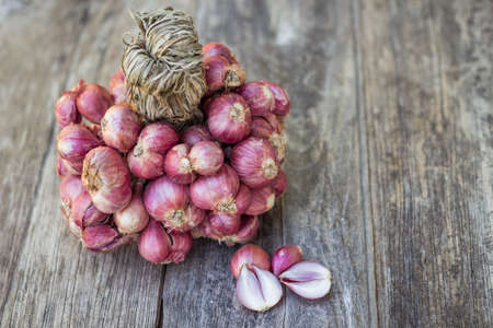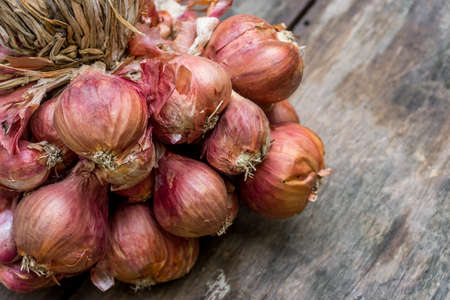 The red onion (shallot) on the old wooden backgroud