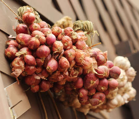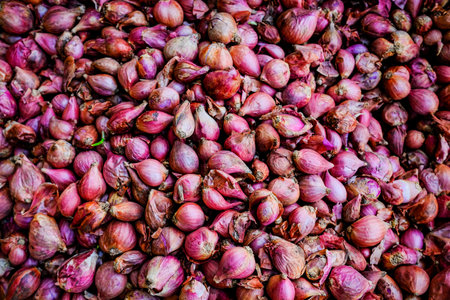Shallot - asia red onion in market - Allium ascalonicum.