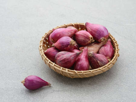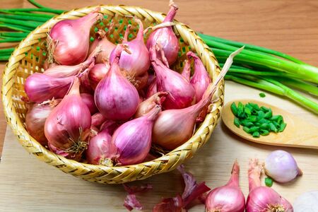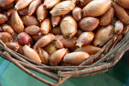 Fresh shallot in bamboo plate