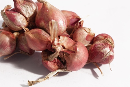 Shallots on white background
