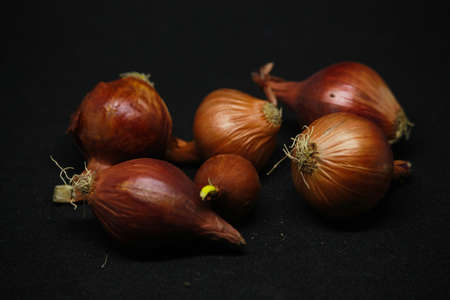 Local fresh shallots in northern Thailand on black background