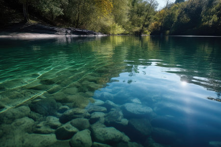 reflection of sparkling water on a tranquil and serene day, created with generative ai