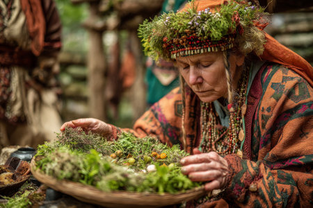 Dedicated Shaman person. Tribal forest girl. Generate Ai