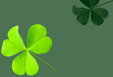 St. Patrick's Day. Green clover leaves decoration on a green background.
