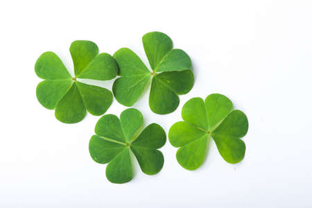 green clover leaves isolated on white background. St. Patrick 's Day. foliage shamrock