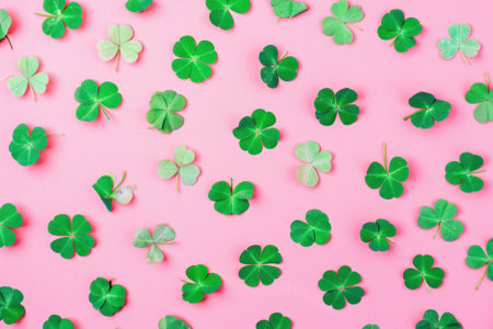 Green clover leaves on pink background. St. Patrick's Day concept.