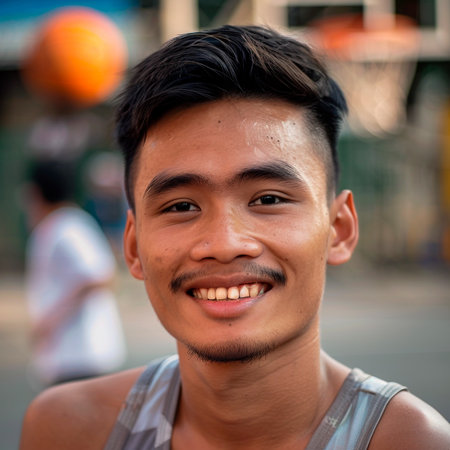 A Southeast Asian man smoking a cigarette, captured in a relaxed moment, with subtle details of the smoke visible
