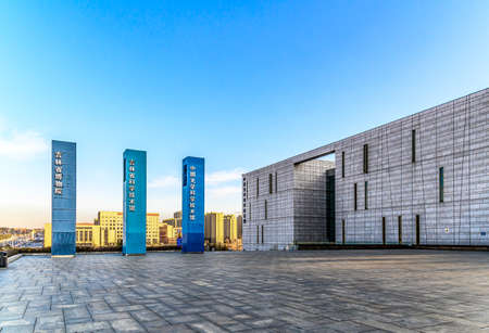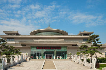 Outdoor view of the Shanxi Museum against blue sky in Taiyuan, China