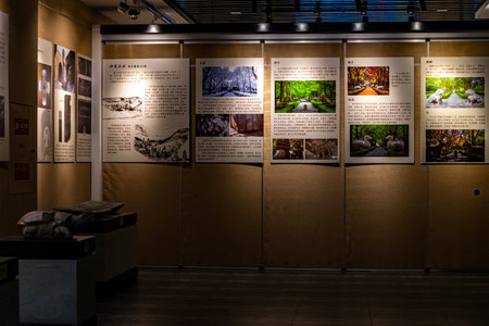 Dazu, China- 6 Nov 2025: Collection of ancient stone craved artwork inside Dazu Stone Carving Museum in Chongqing, China. The museum houses a large number of precious stone carving cultural relics