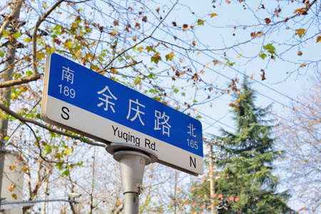Xian, China - July 2019 : Shangpu Lu street name sign in chinese city Chengdu, Sichuan Province