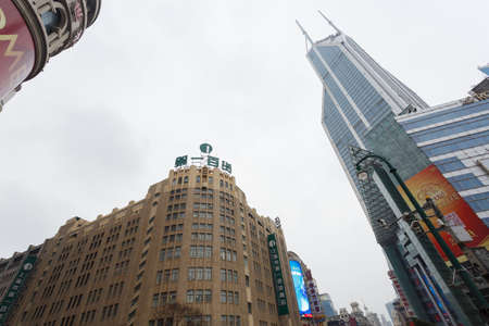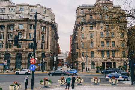 SHANGHAI, CHINA - JANUARY 10 2020: Shanghai street building, Shanghai city a lot of the building art, And this city is one of the destination for traveler. Shanghai street art. At this time among the Coronavirus disease in China.