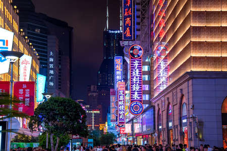 SHANGHAI - AUGUST 19, 2009: Nanjing Road on August 19, 2009 in Shanghai. Thousands of foreign and local tourists stroll nightly under bright neon signs on Nanjing Road, Shanghai.