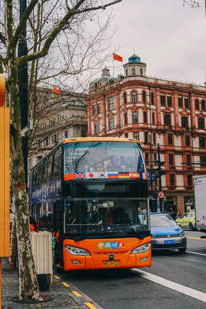 SHANGHAI, CHINA, OCTOBER 28: Buses taking shoppers and tourists through Nanjing Road shopping street on October 28, 2019 in Shanghai