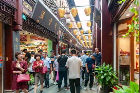 Hangzhou, China - May 11, 2019: People walking down streets in Hefang Street pedestrian mall