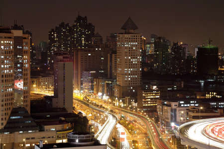 SHANGHAI - MAY 2: skyscrapers and street on May 2, 2013 in Shanghai. Shanghai is the largest city by population in the world with 23 million as in 2010.